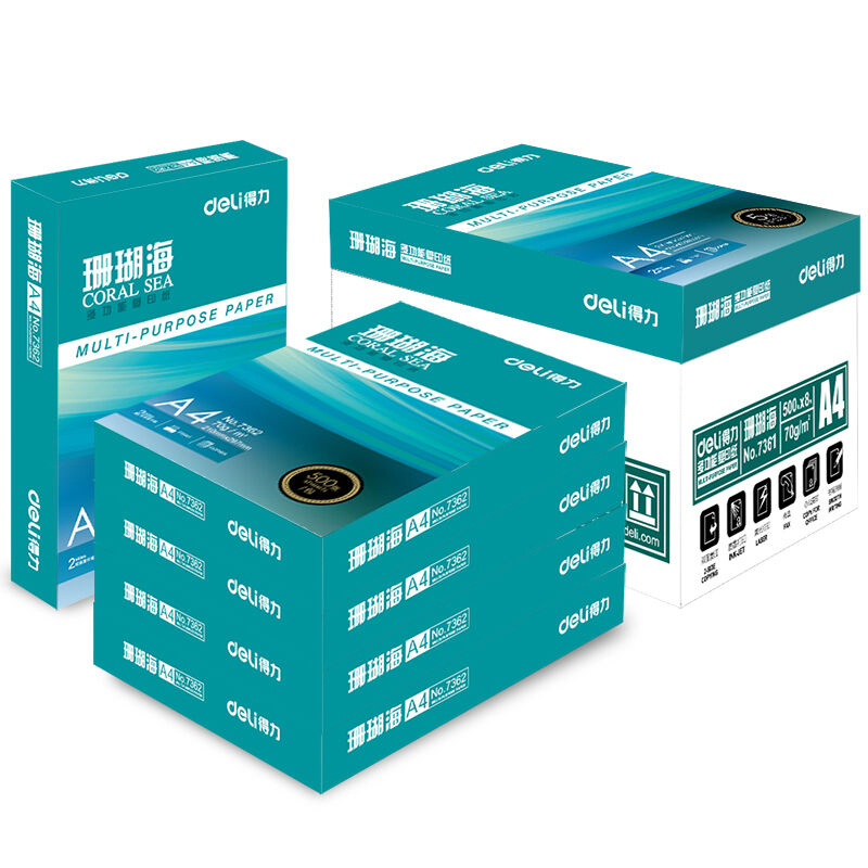 • 商品名称:得力(deli) 7362 A4 珊瑚海复印纸 70g 500张/包 单包装